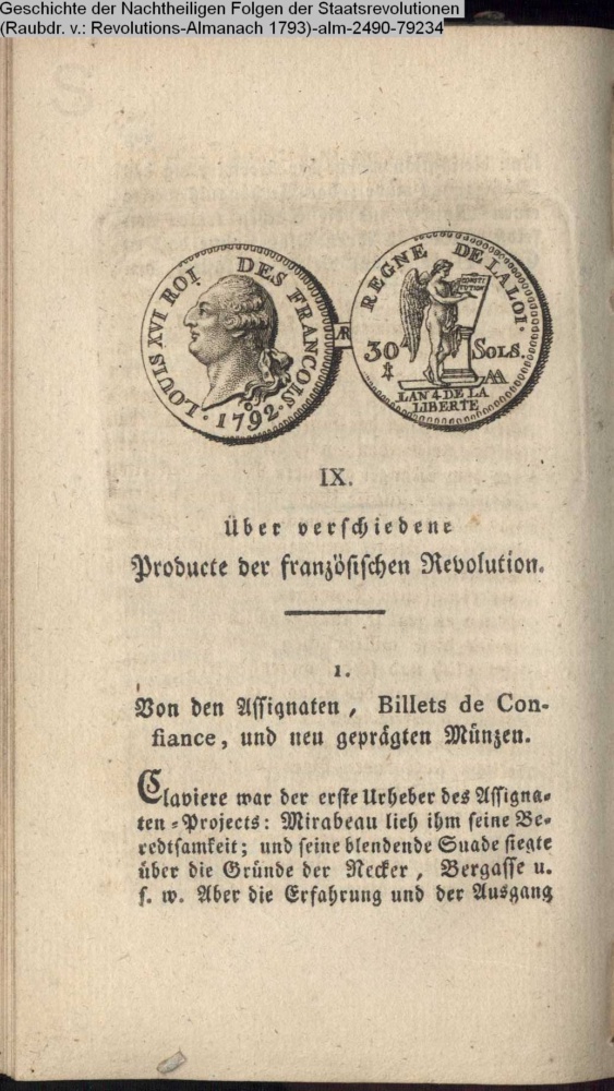 1. / Von den Assignaten, Billets de Con-/ fiance, und neu geprägten Münzen