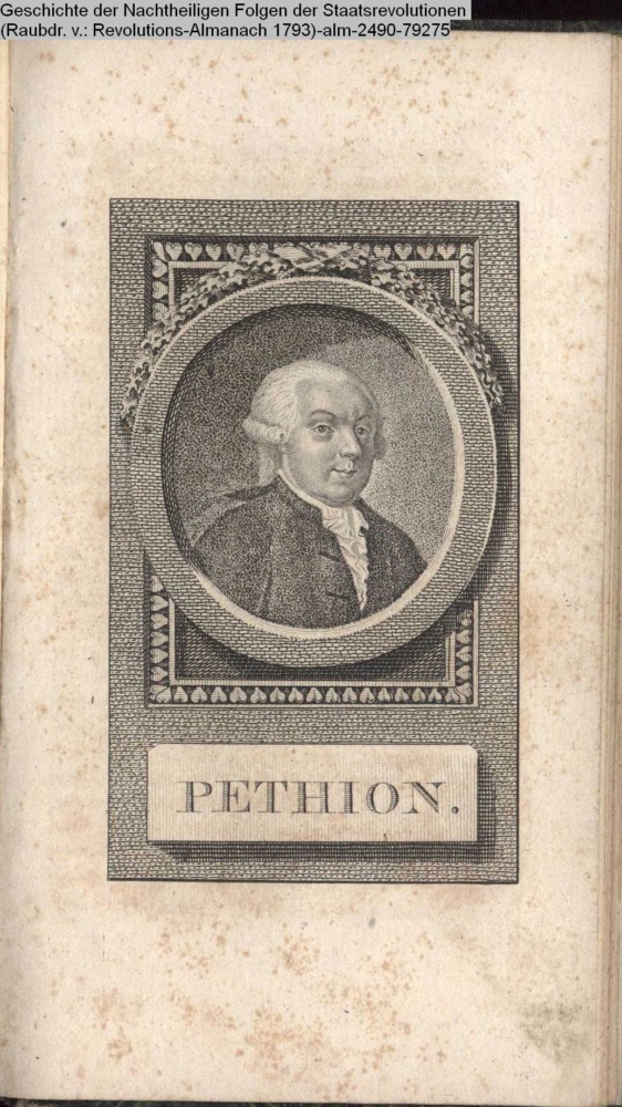 Dieses Portrait wohl als Umschlagraphik verso des Revolutions-Almanach 1793; hier als verkleinerter Neustich in kleinerem Schmuckrahmen