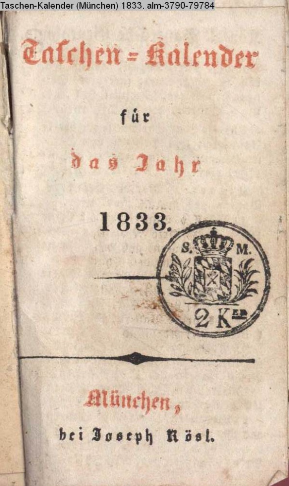 Taschen-Kalender / für / das Jahr / 1833. / München, / bei Joseph Rösl
