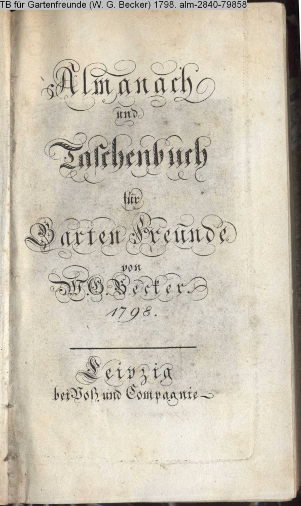 Almanach / und / Taschenbuch / für / Garten Freunde / von / W. G. Becker / 1798. / Leipzig / bei Voß und Compagnie
