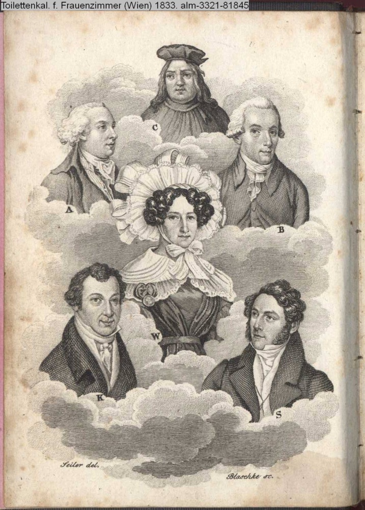 Mit Portraits A, C, B, K., W, S: Celtis, Alxinger, Blumauer, Kuffner, Franul von Weissenthurn, J. G. Seidel s. Textbezug INr 81860, Obj 17