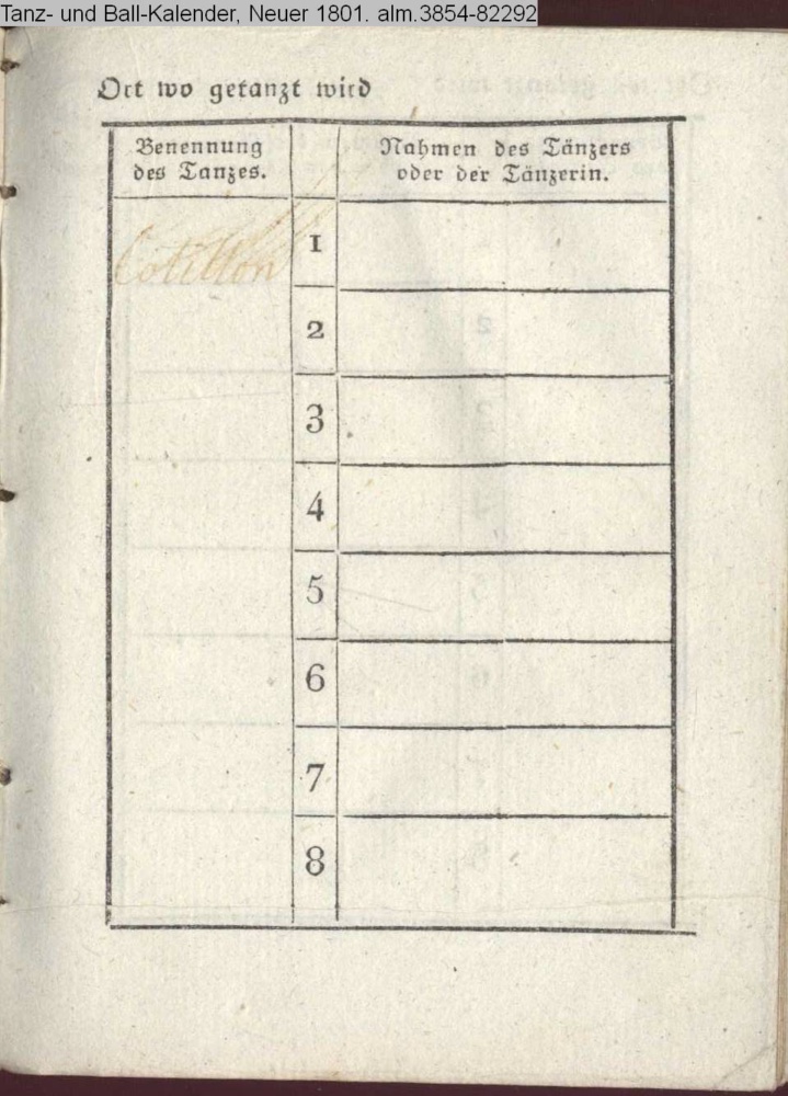 Tanz- und Ball-Kalender, Neuer 1801, Nr. 82292
