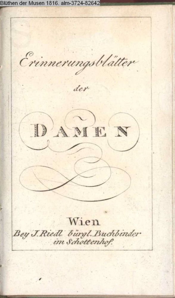 Erinnerungsblätter / der / DAMEN / Wien / Bey J. Riedl bürgl. Buchbinder / im Schottenhof