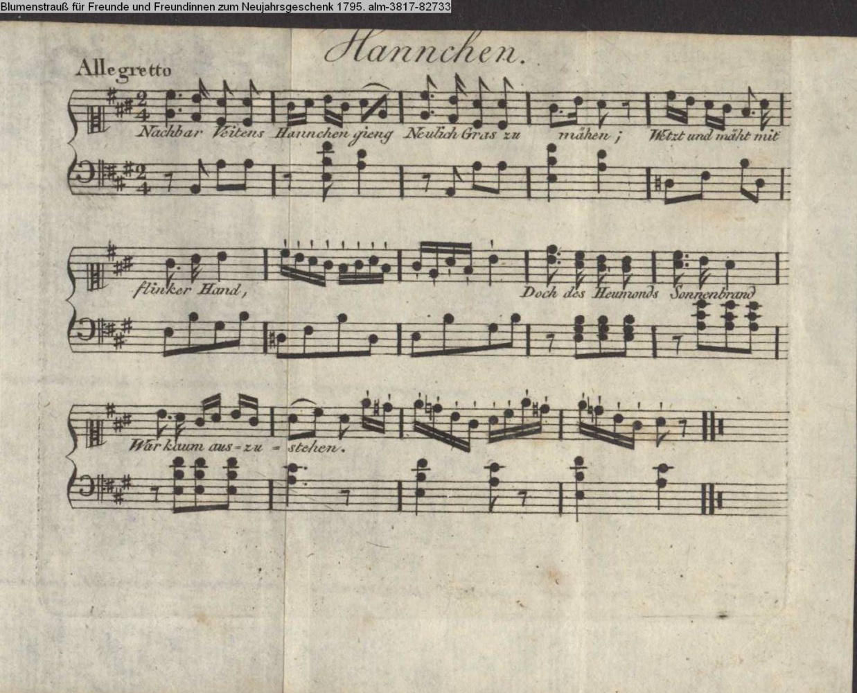 Vertonung des Gedichts »Hannchen« von J. F. Schlez