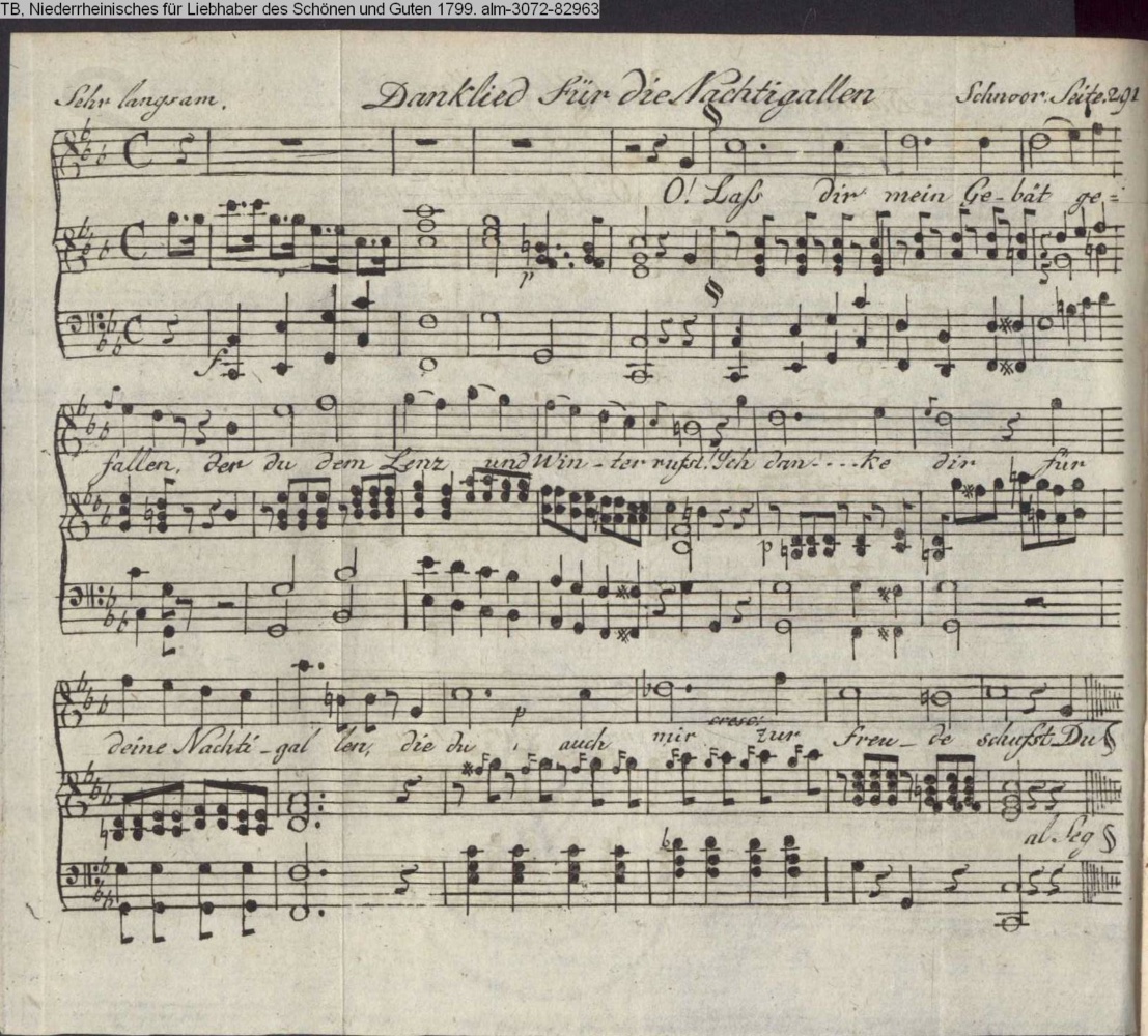 Vertonung des Gedichts »Danklied für die Nachtigallen« von F. A. Krummacher