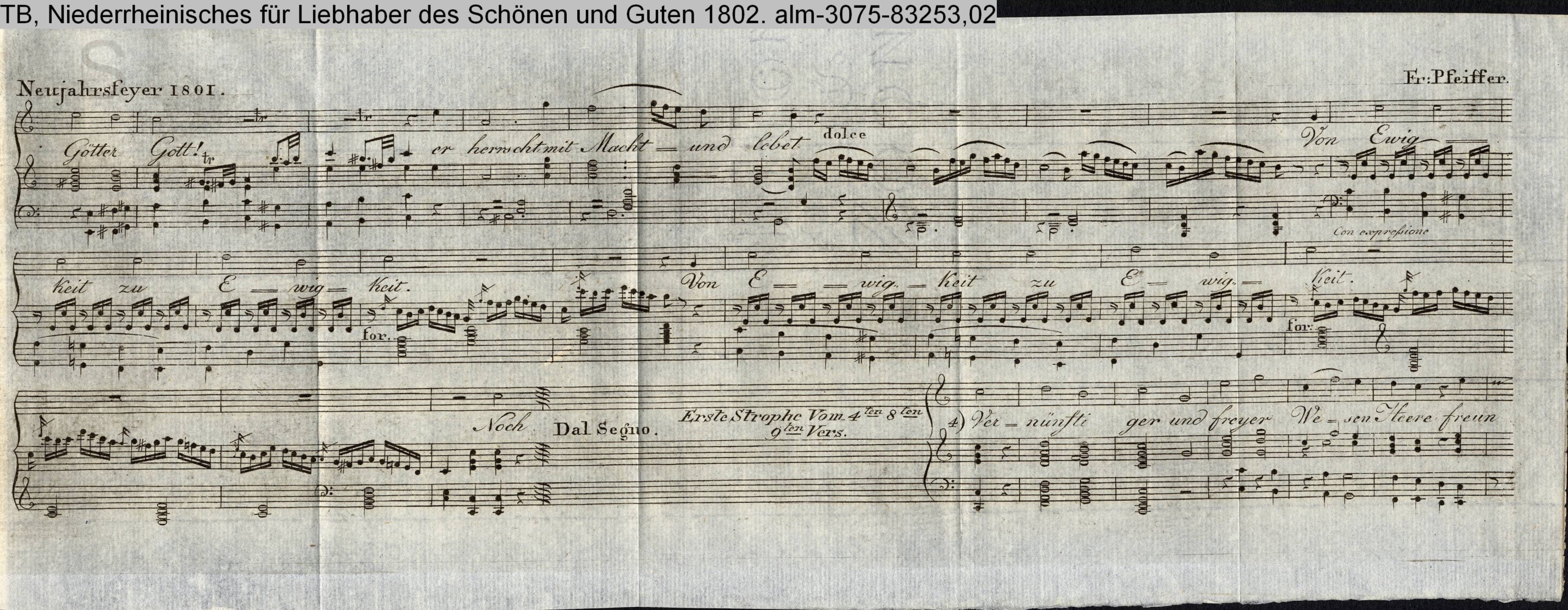Vertonung des Gedichts »Hymnus bei der grossen Neujahrsfeyer«