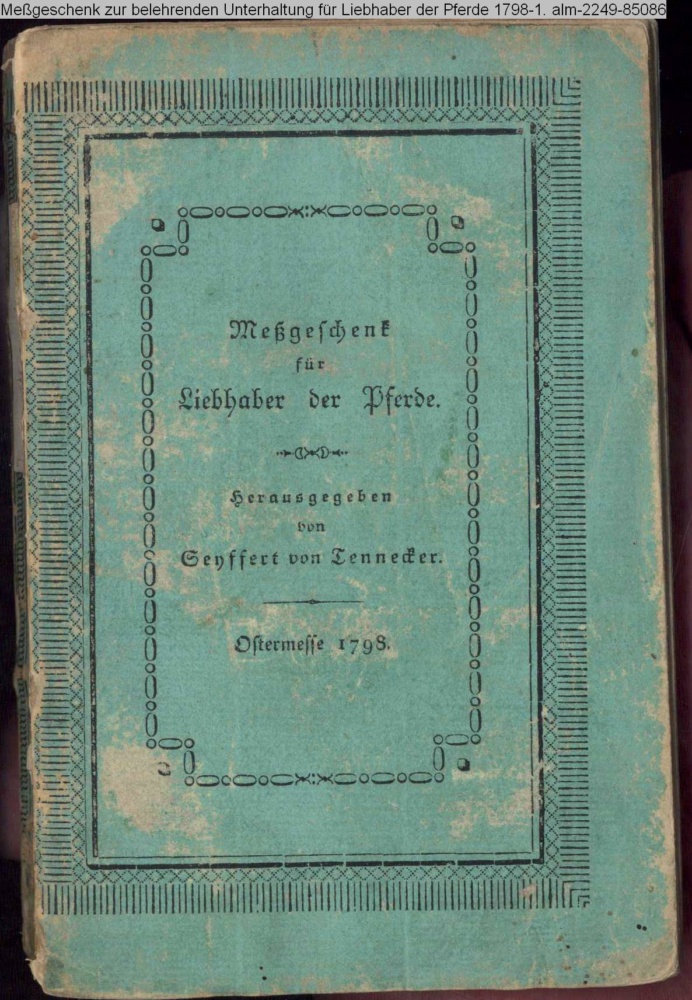 Meßgeschenk / für / Liebhaber der Pferde. / Herausgegeben / von / Seyffert von Tennecker. / Ostermesse 1798