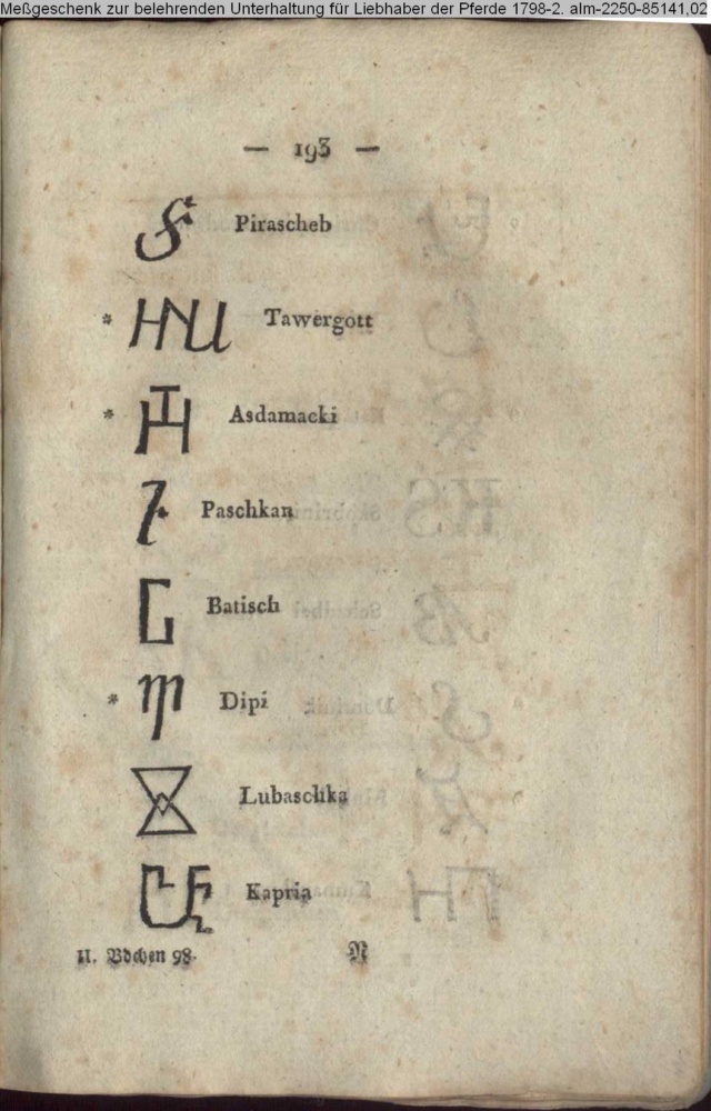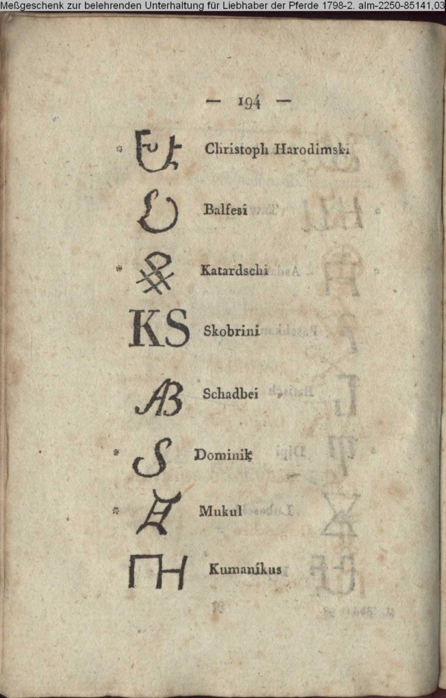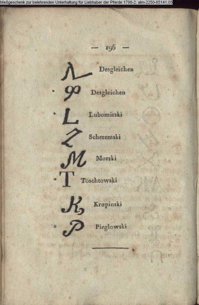 aus: Meßgeschenk zur belehrenden Unterhaltung für Liebhaber der Pferde 1798-1