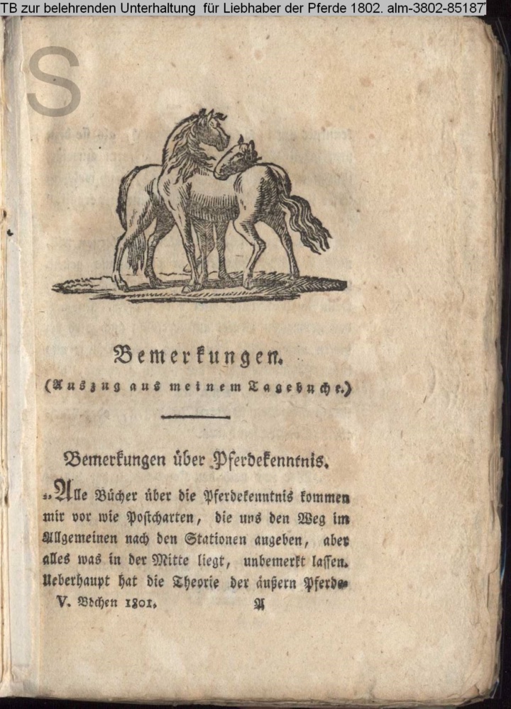 Taschenbuch zur belehrenden Unterhaltung für Liebhaber der Pferde 1802, S. 1