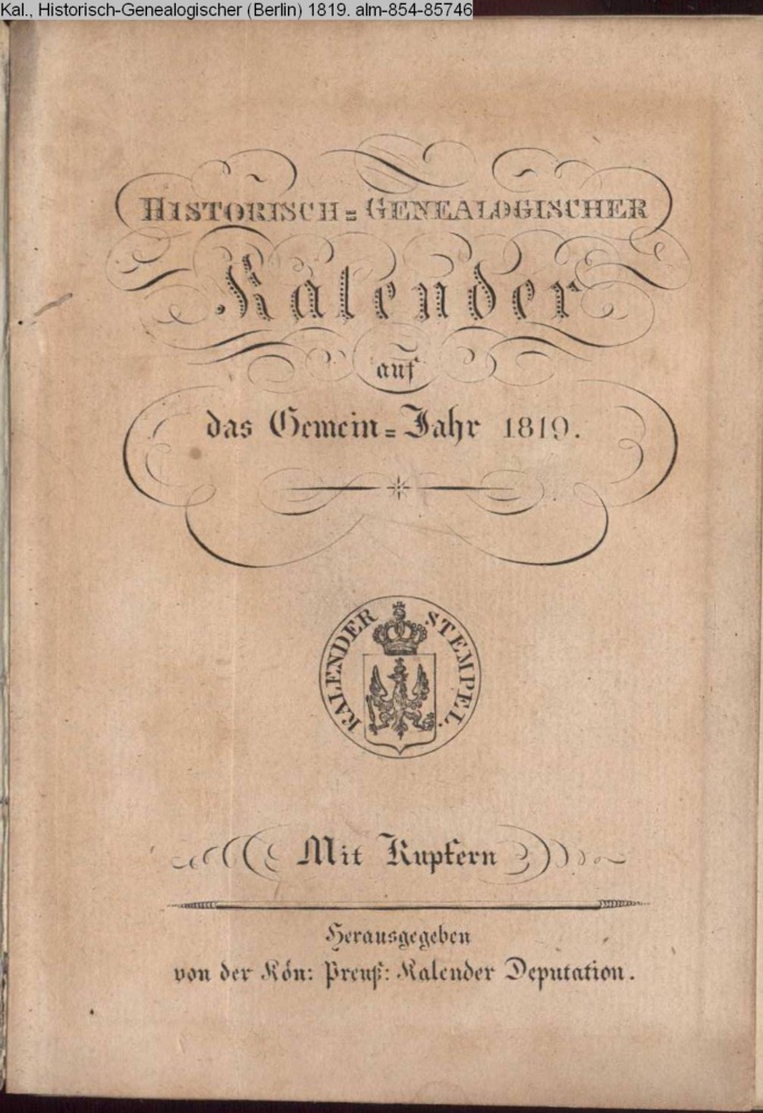 Kalender, Historisch-Genealogischer (Berlin) 1819