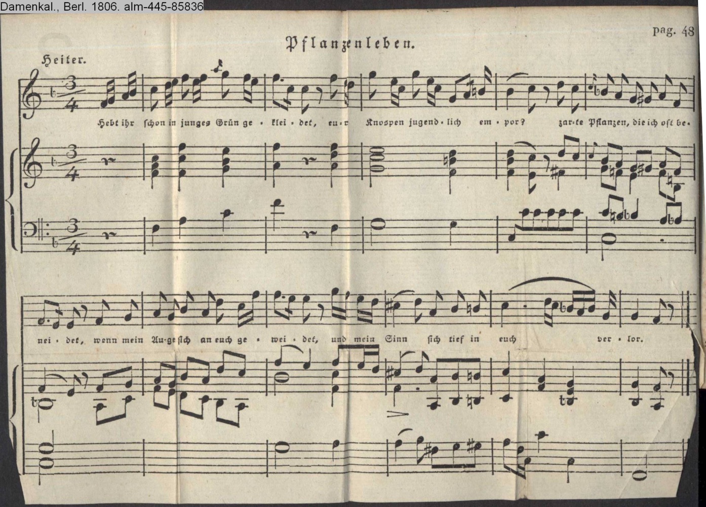 Vertonung des Gedichts »Pflanzenleben« von Natalie d.i. C. L. von Ahlefeld