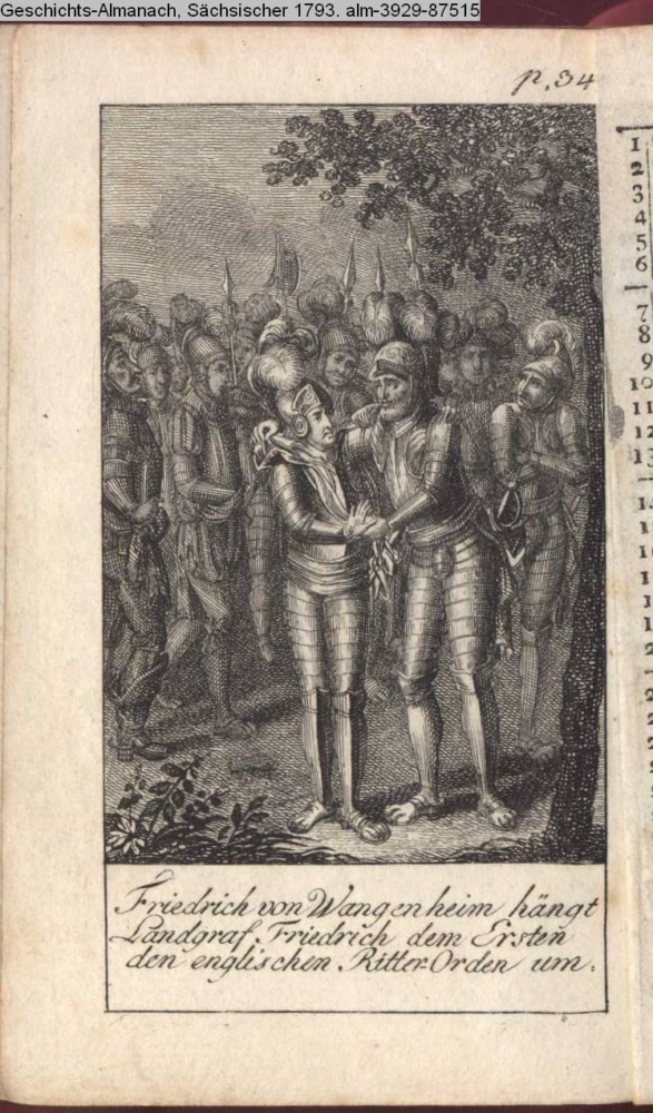 Friedrich von Wangenheim hängt / Landgraf Friedrich dem Ersten / den Englischen Ritter-Orden um