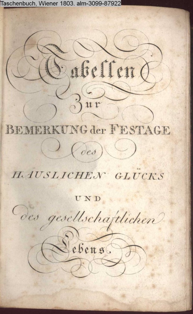 Tabellen / zur / BEMERKUNG der FESTTAGE / des / HÄUSLICHEN GLÜCKS / UND / des gesellschaftlichen / Lebens