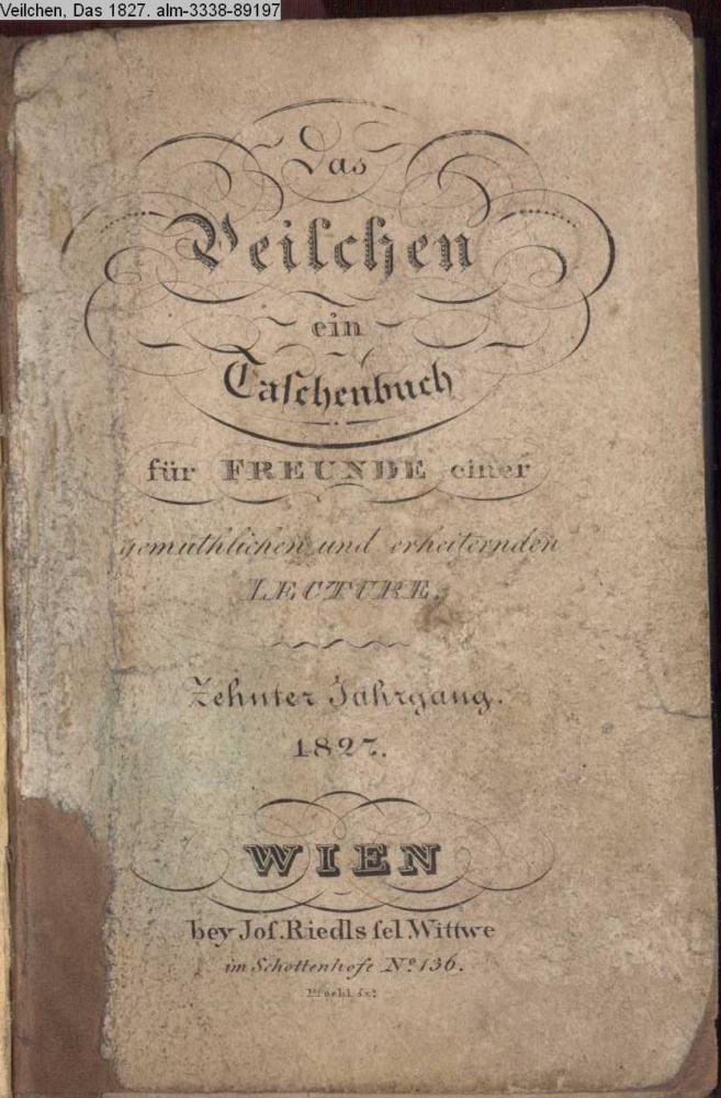 Das / Veilchen / ein / Taschenbuch / für FREUNDE / einer / gemüthlichen und erheiternden / LECTÜRE. / Zehnter Jahrgang. / 1827. / WIEN. / Jos. Riedls sel. Wittwe / am Schottenhofe No. 136