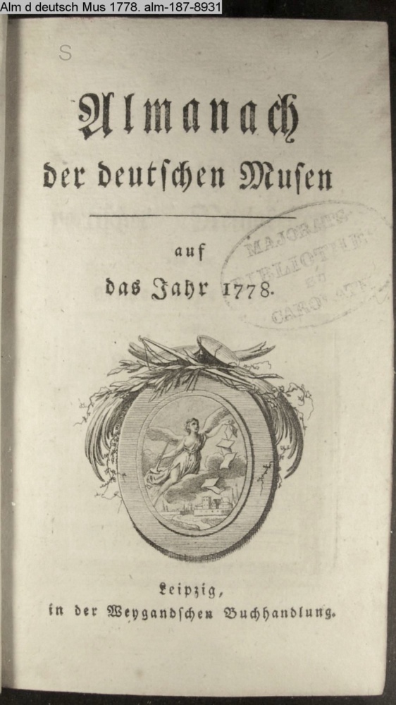 Almanach / der deutschen Musen / auf / das Jahr 1778. / Leipzig, / in der Weygandschen Buchhandlung