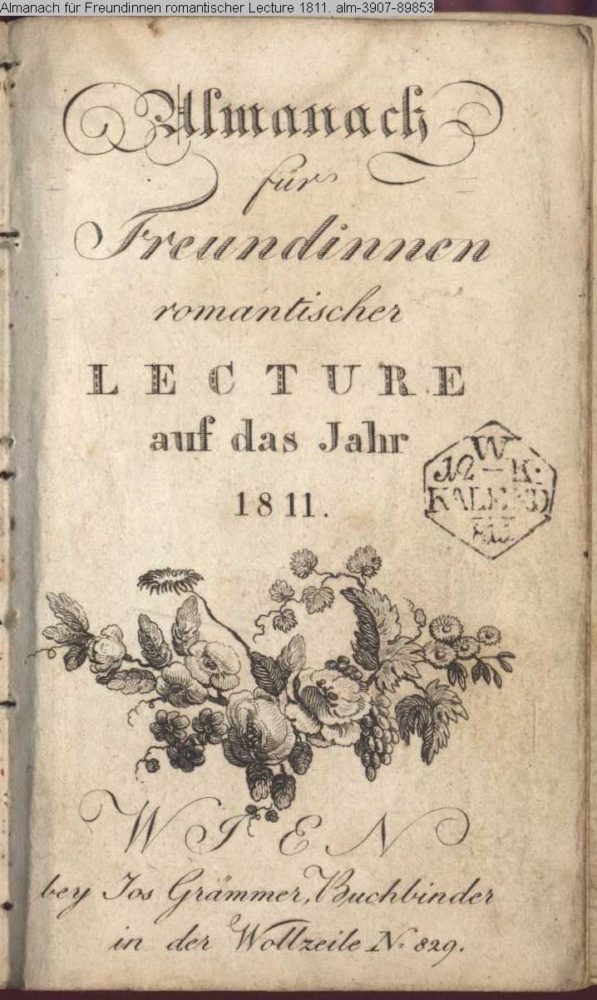 Almanach / für / Freundinnen / romantischer / LECTURE / auf das Jahr / 1811. / WIEN / bey Jos. Grämmer, Buchbinder / in der Wollzeile N. 829