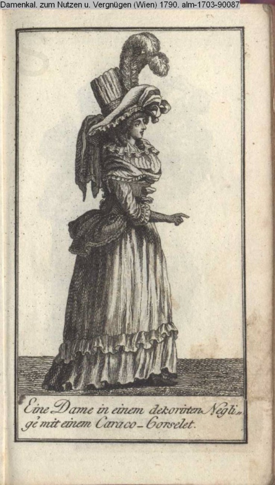 Eine Dame in einem dekorirten Negli- / gé mit einem Caraco-Corselet