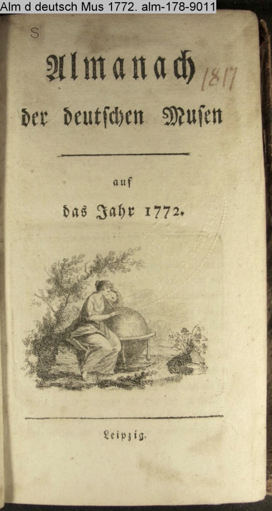 Almanach / der deutschen Musen / auf / das Jahr 1772. / Leipzig
