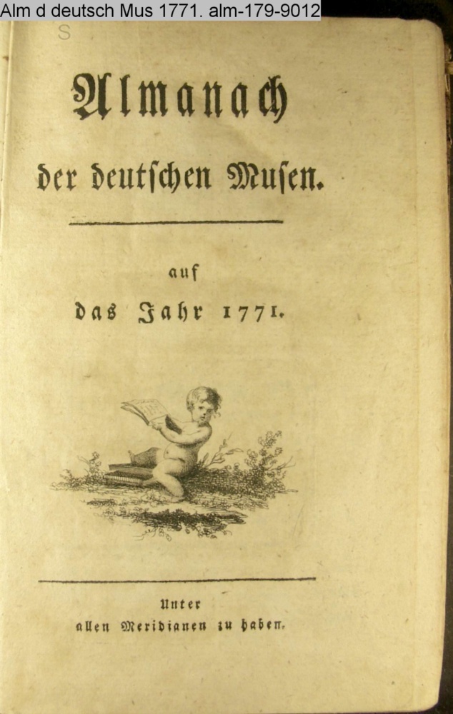 Almanach / der deutschen Musen. / auf / das Jahr 1771 / Unter / allen Meridianen zu haben