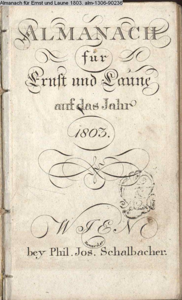 ALMANACH / für / Ernst und Laune / auf das Jahr / 1803. / WIEN / bey Phil. Jos. Schalbacher