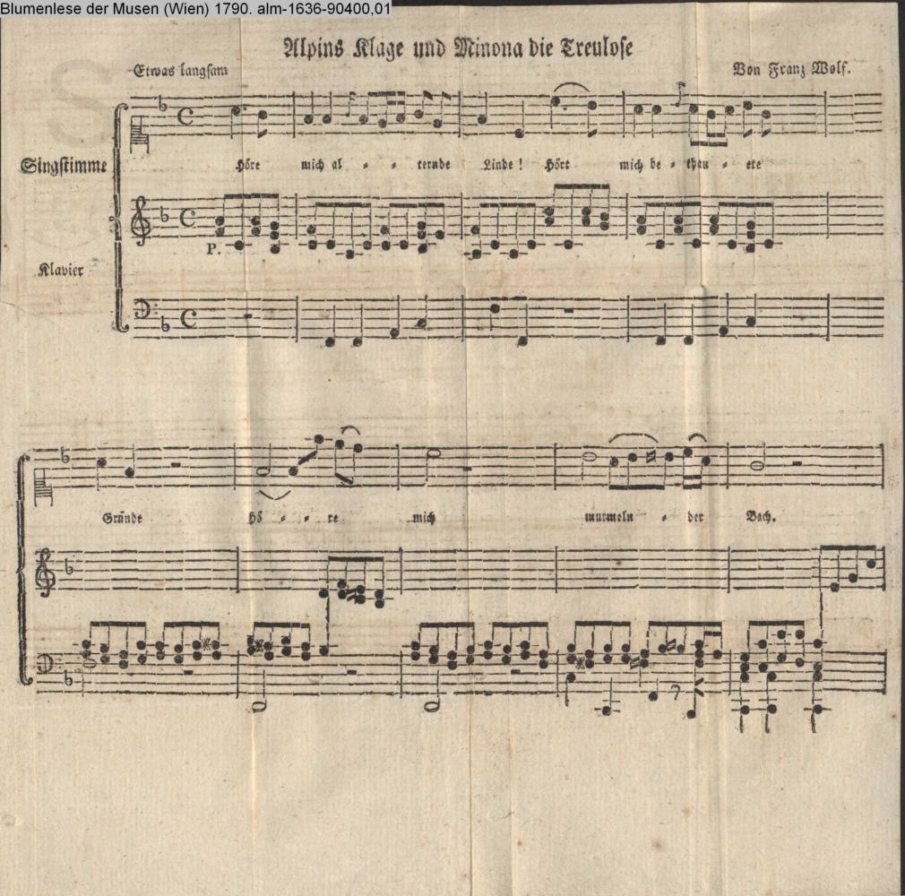 Vertonung des Gedichts »Alpins Klage um Minona die Treulose« von J. J. K. von Winkler von Mohrenfels