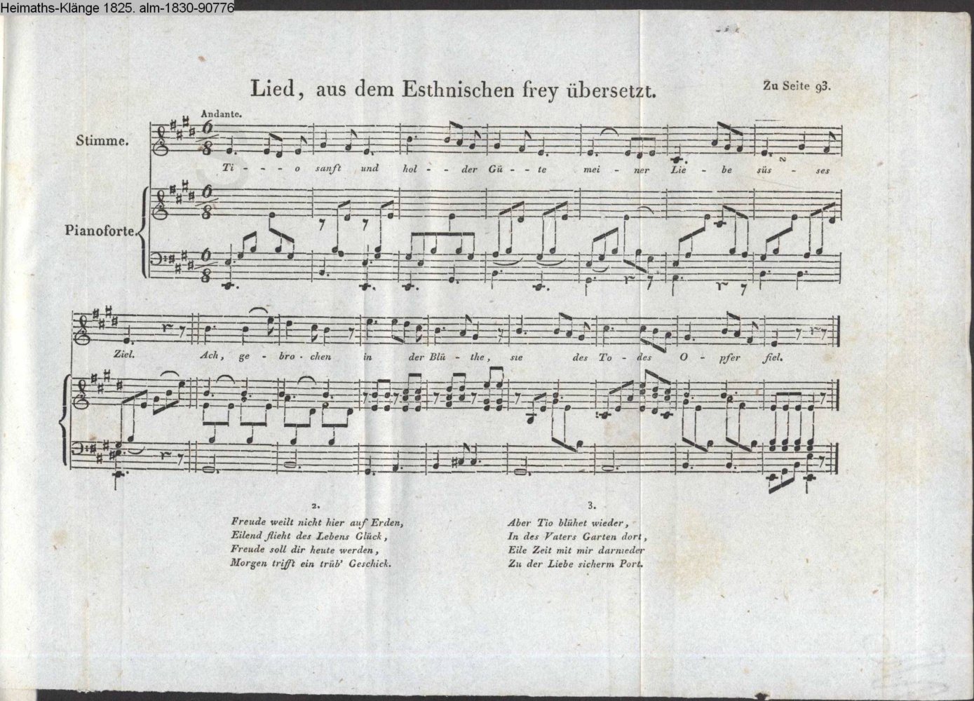 Lied, aus dem Esthnischen frey übersetzt. / Zu Seite 93