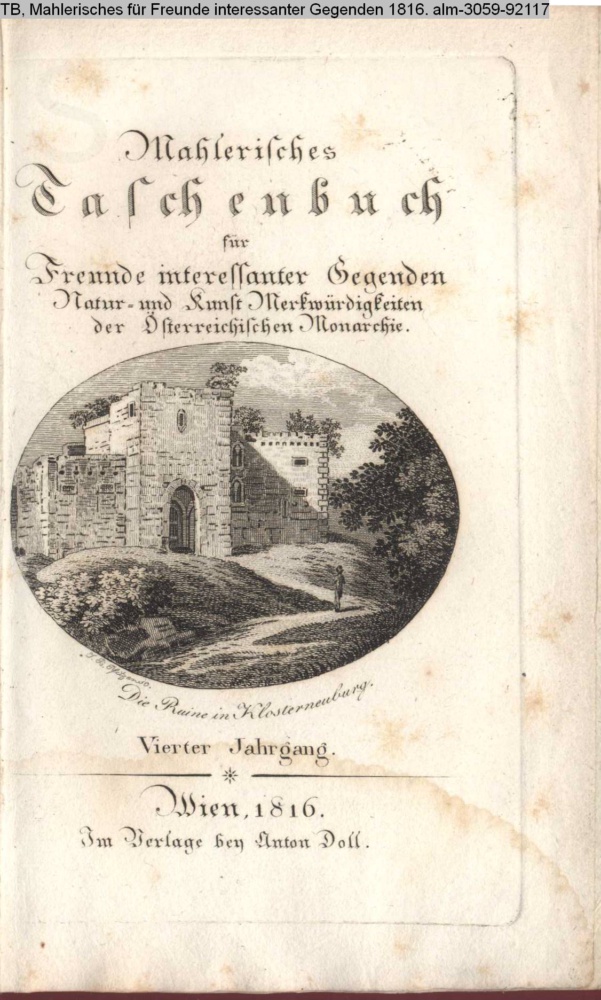 Mahlerisches / Taschenbuch / für / Freunde interessanter Gegenden / Natur- und Kunst-Merkwürdigkeiten / der Österreichischen Monarchie. / Vierter Jahrgang. / Wien, 1816. / Im Verlage bey Anton Doll