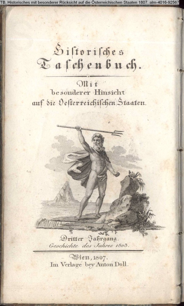 Geschichte / des neunzehnten Jahrhunderts. / Mit / besonderer Hinsicht / auf die Oesterreichischen Staaten. Drittes Bändchen. / Geschichte des Jahres 1803. / Wien, 1807. / Im Verlage bey Anton Doll