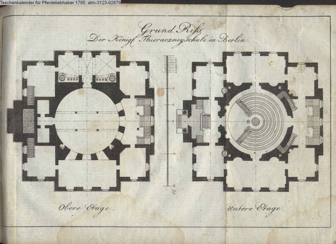 V. / Pferdearzneikunst. / Weitere Nachrichten von der Thierarznei- / schule in Berlin, nebst Grundriß / von dem warmen Pferdebad