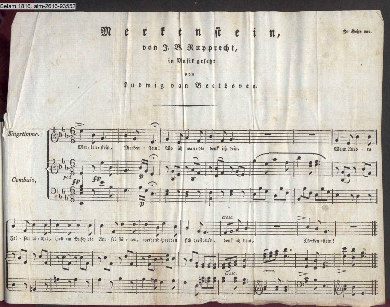 Merkenstein, / von J. B. Rupprecht, / in Musik gesetzt, / von / Ludwig van Beethoven