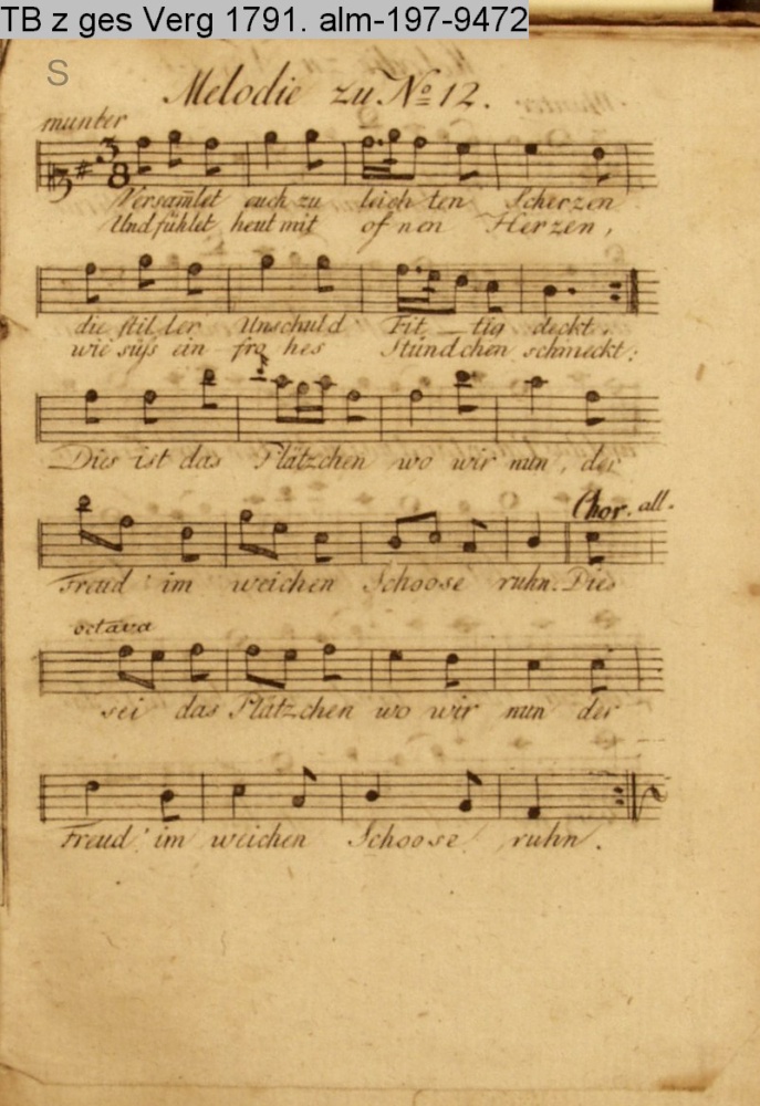 Vertonung des Gedichts »Vorzüge der Geselligkeit« von Zschiedrich