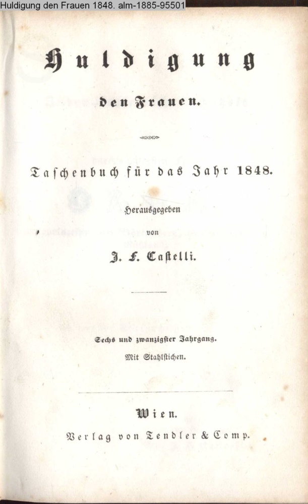HULDIGUNG / DEN / FRAUEN. / FÜR 1848. / WIEN. TENDLER & CIE.