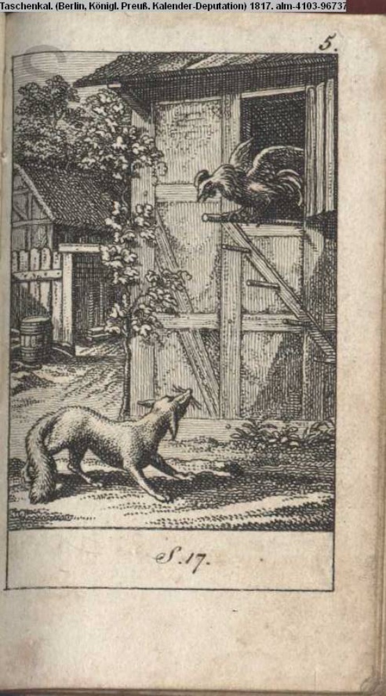 Illustration zu »Der Hahn und der Fuchs« von J. La Fontaine INr 96751, Obj 22