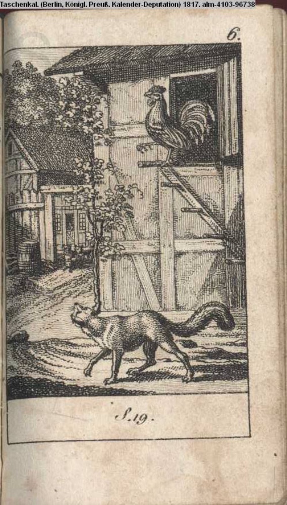 Illustration zu »Der Hahn und der Fuchs« von J. La Fontaine INr 96751, Obj 22