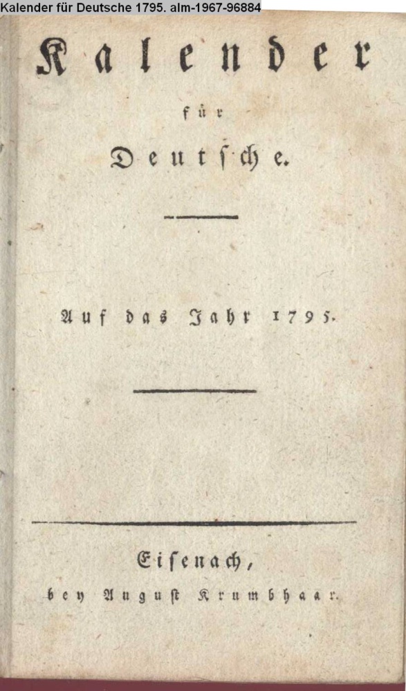 Kalender / für / Deutsche. / Auf das Jahr 1795. / Eisenach, / bey August Krumbhaar