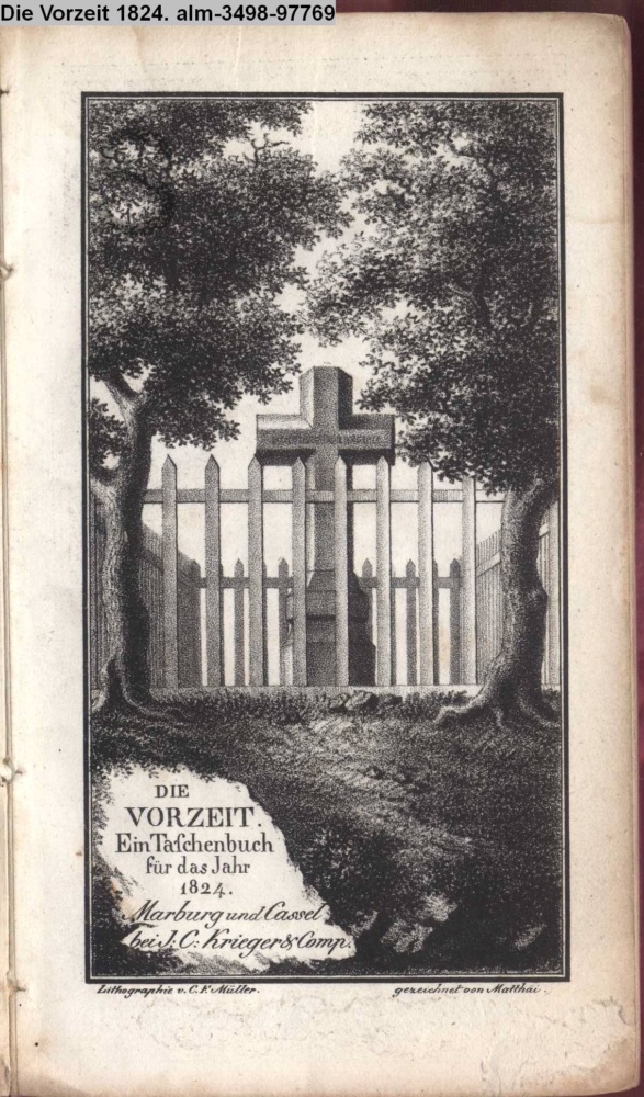 DIE / VORZEIT / Ein Taschenbuch / für das Jahr / 1825. / Marburg u. Cassel / bei J. C. Krieger & Cie.