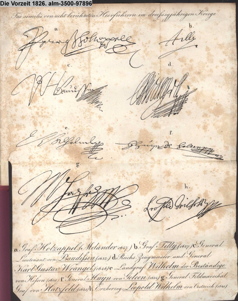 2. / Fac simile's von acht berühmten Heer- / führern im dreißigjährigen Kriege, / nebst einem Schutzbriefe des Landgrafen Wilhelm's V., / des Beständigen, für die Stadt Höxter