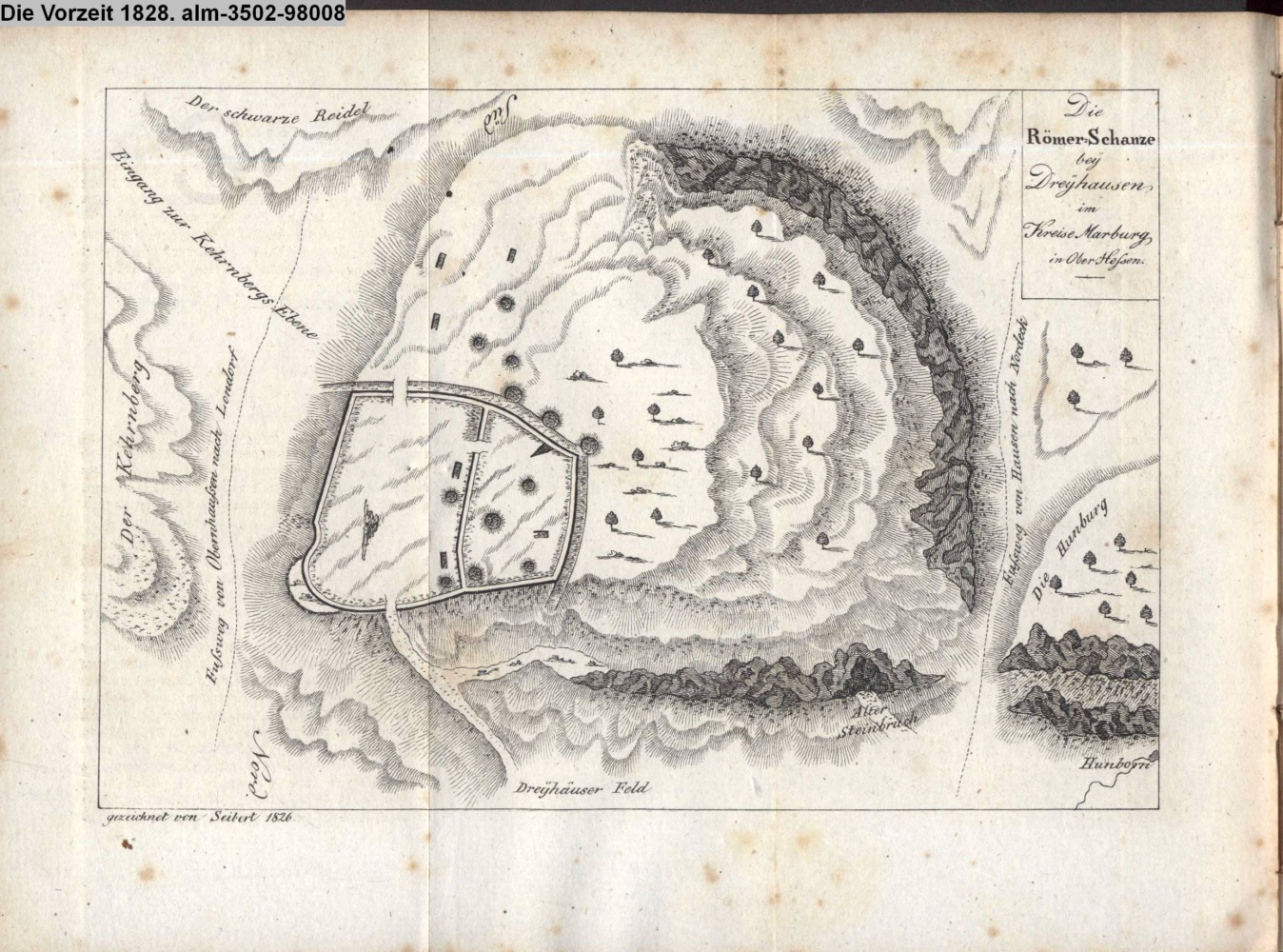 auszufaltende Karte; Beigabe zu »Die Römerschanze, bei Dreihausen, in Oberhessen« von Seibert