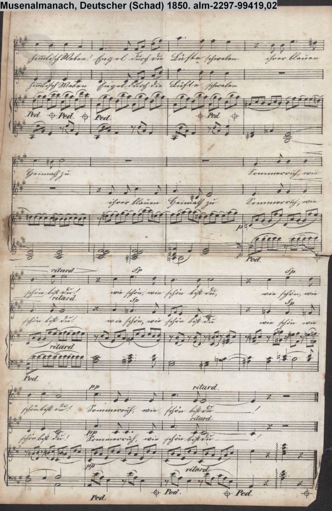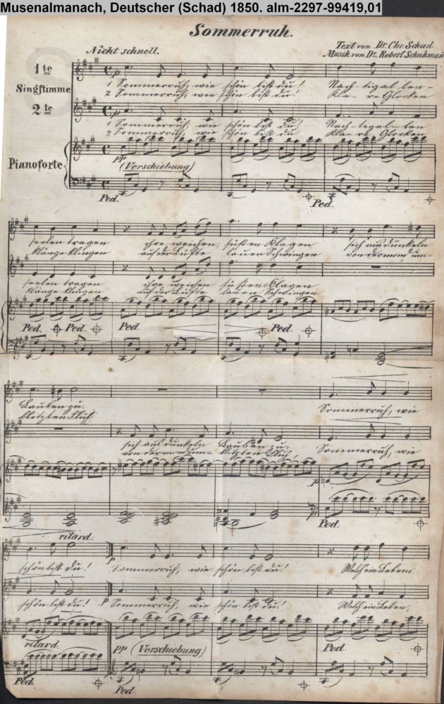 ein weiterer Druck der Schumannschen Vertonung in: Musenalmanach, Deutscher (Schad) 1857, alm-2304; INr 100330
