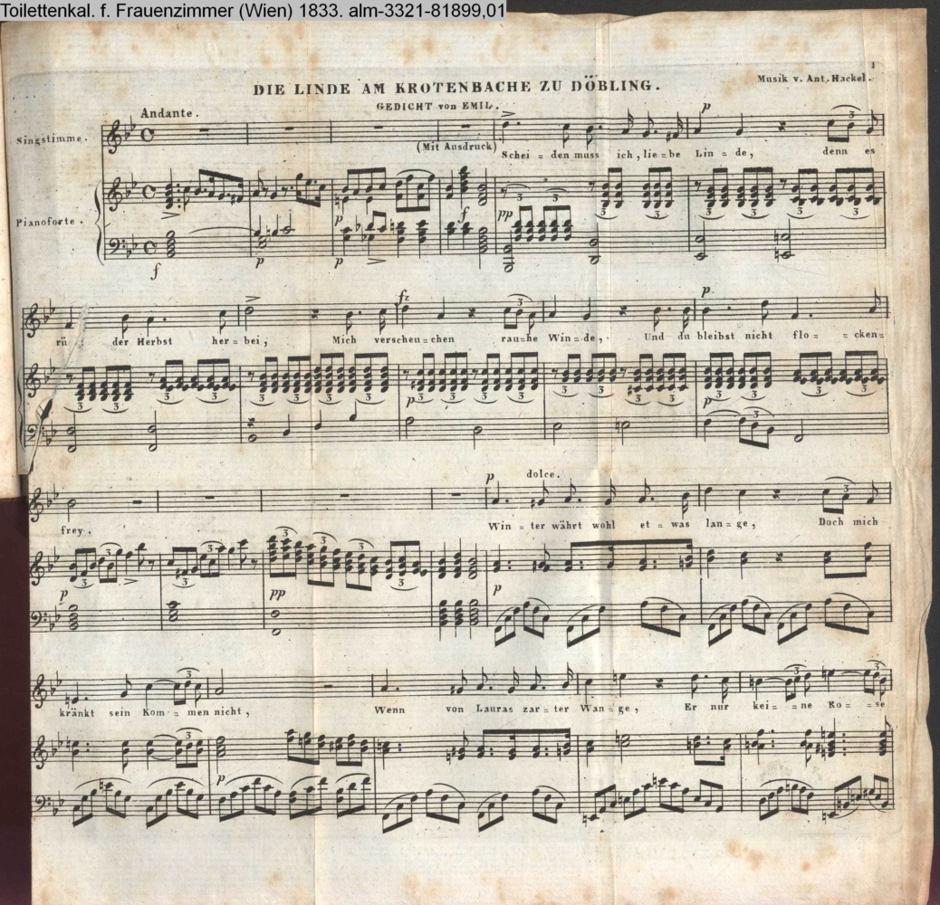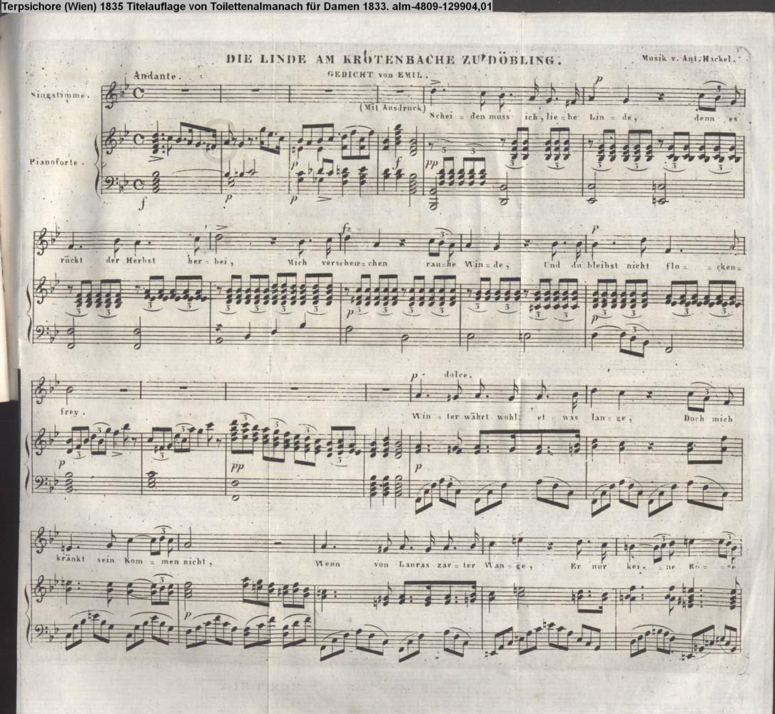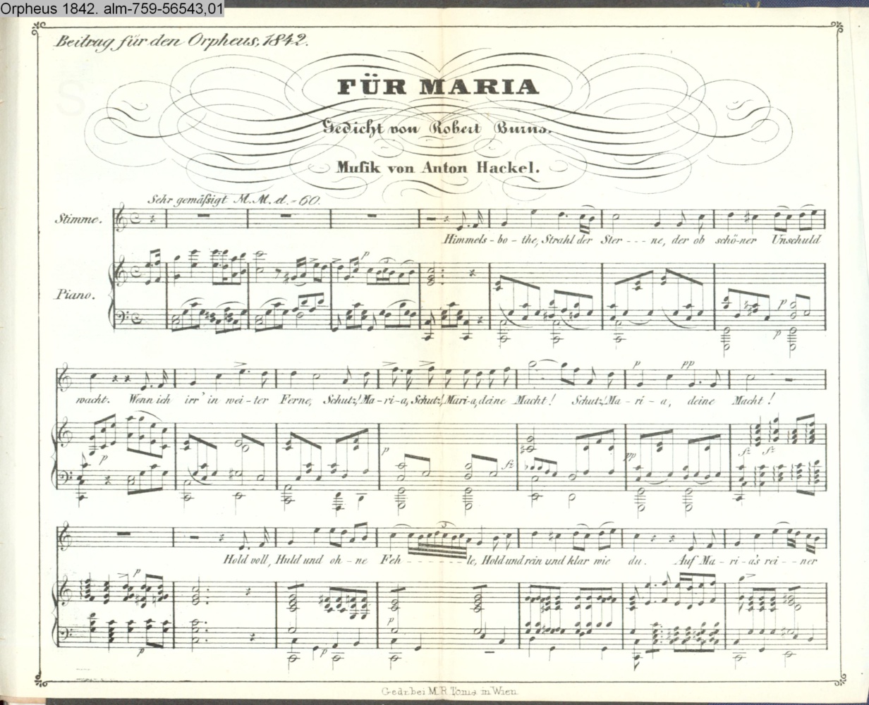 am Objekt: Beytrag für den Orpheus 1842; Gedr. b. M. R. Toma in Wien