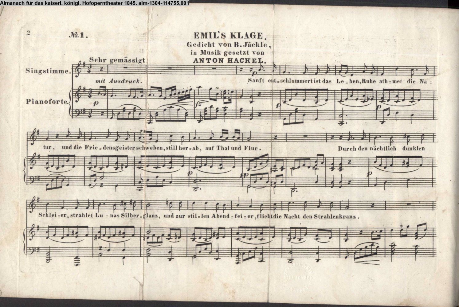 Vertonung des Gedichts »Emils Klage« von B. Jäckle