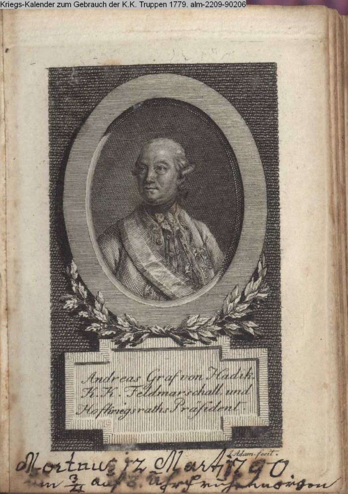 Andreas Graf von Hadik. / K.K. Feldmarschall und / Hofkriegsraths Präsident