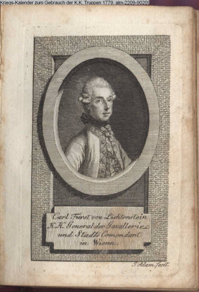 Carl Fürst von Lichtenstein / K.K. General der Cavallerie / und Stadt Comendant / in Wien