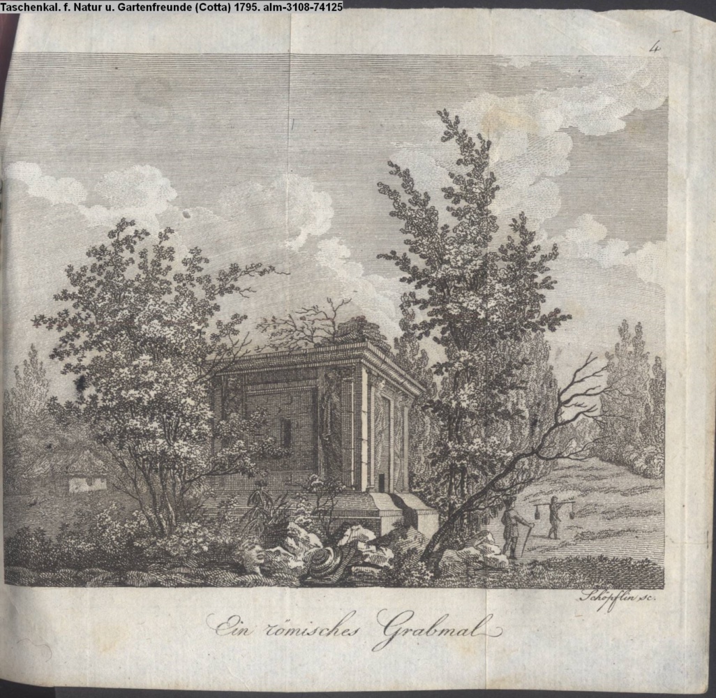 Illustration zu »Beschreibung des Gartens in Hohenheim. / Ein römisches Grabmal, auch das Grabmal des Nero genannt« von G. H. Rapp INr 74123, Obj 16