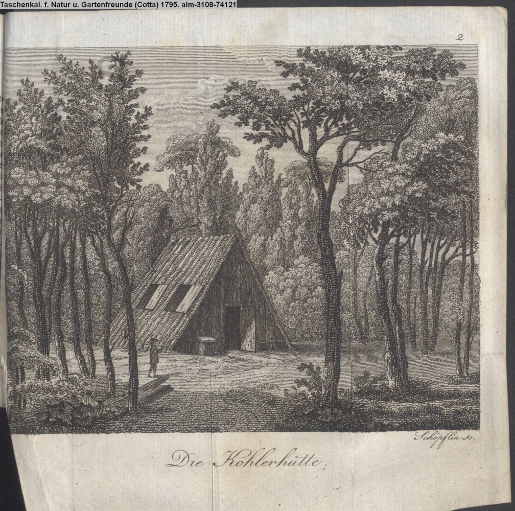 Illustration zu »Beschreibung des Gartens in Hohenheim. / Die Köhlerhütte« von G. H. Rapp INr 74120, Obj 13