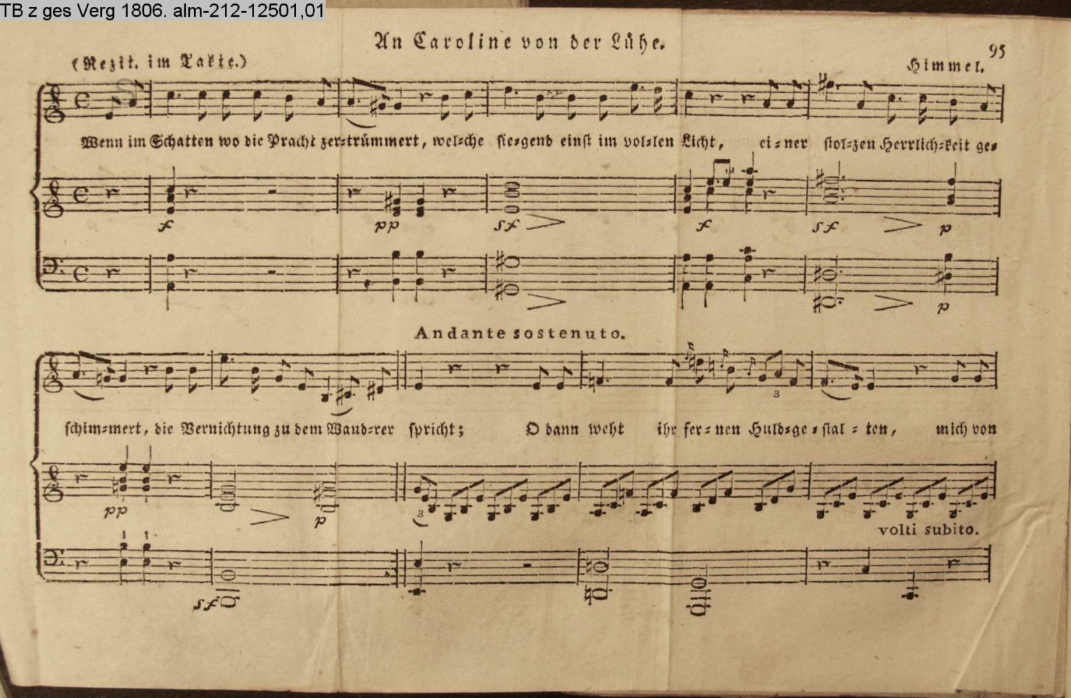 Vertonung des Gedichts »Aus Rom an Caroline von der Lühe« von Elisa, d. i. Charlotte Elisabeth von der Recke