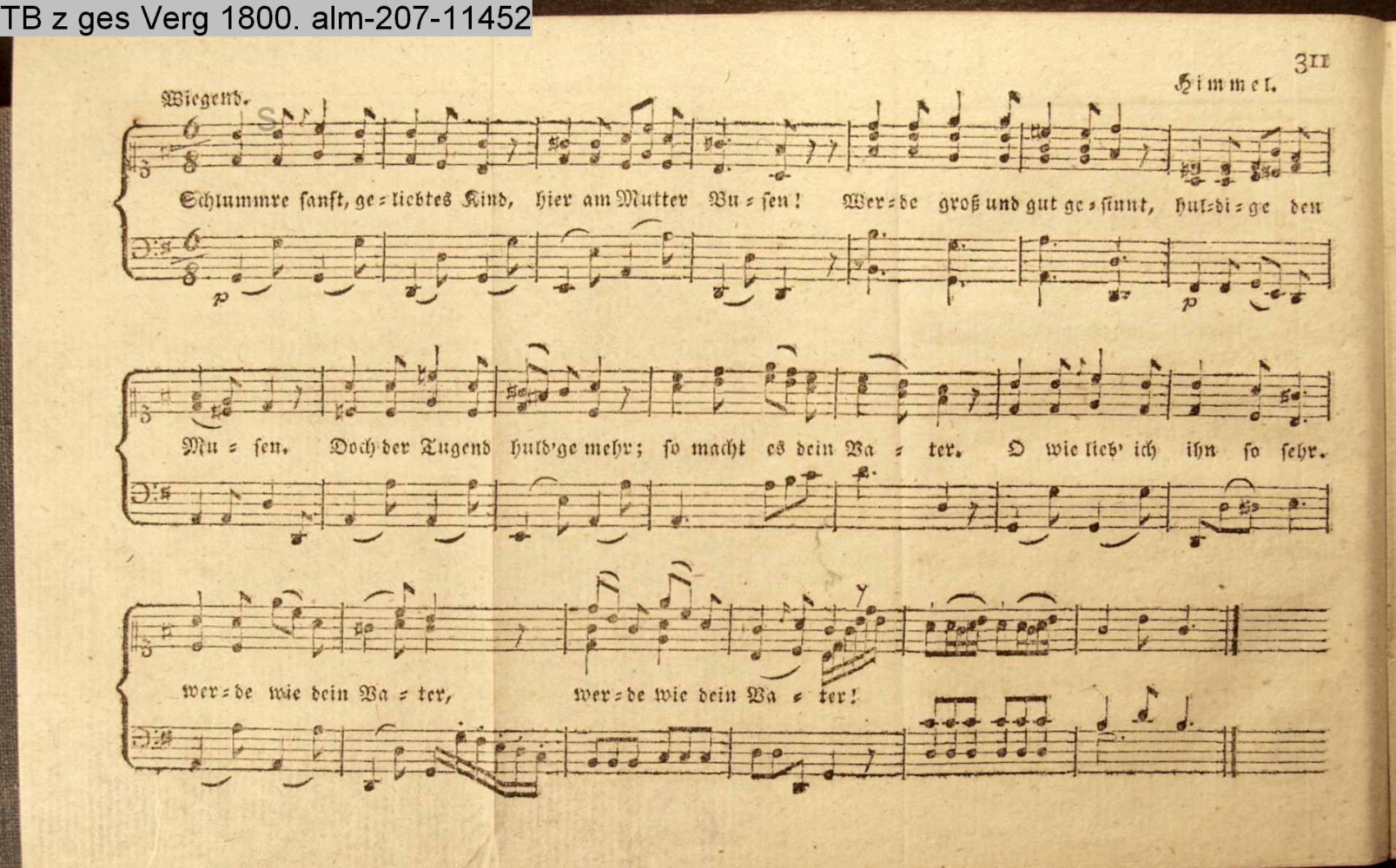 Vertonung des Gedichts »Wiegenlied für die Frau Capellmeisterin Naumann«
