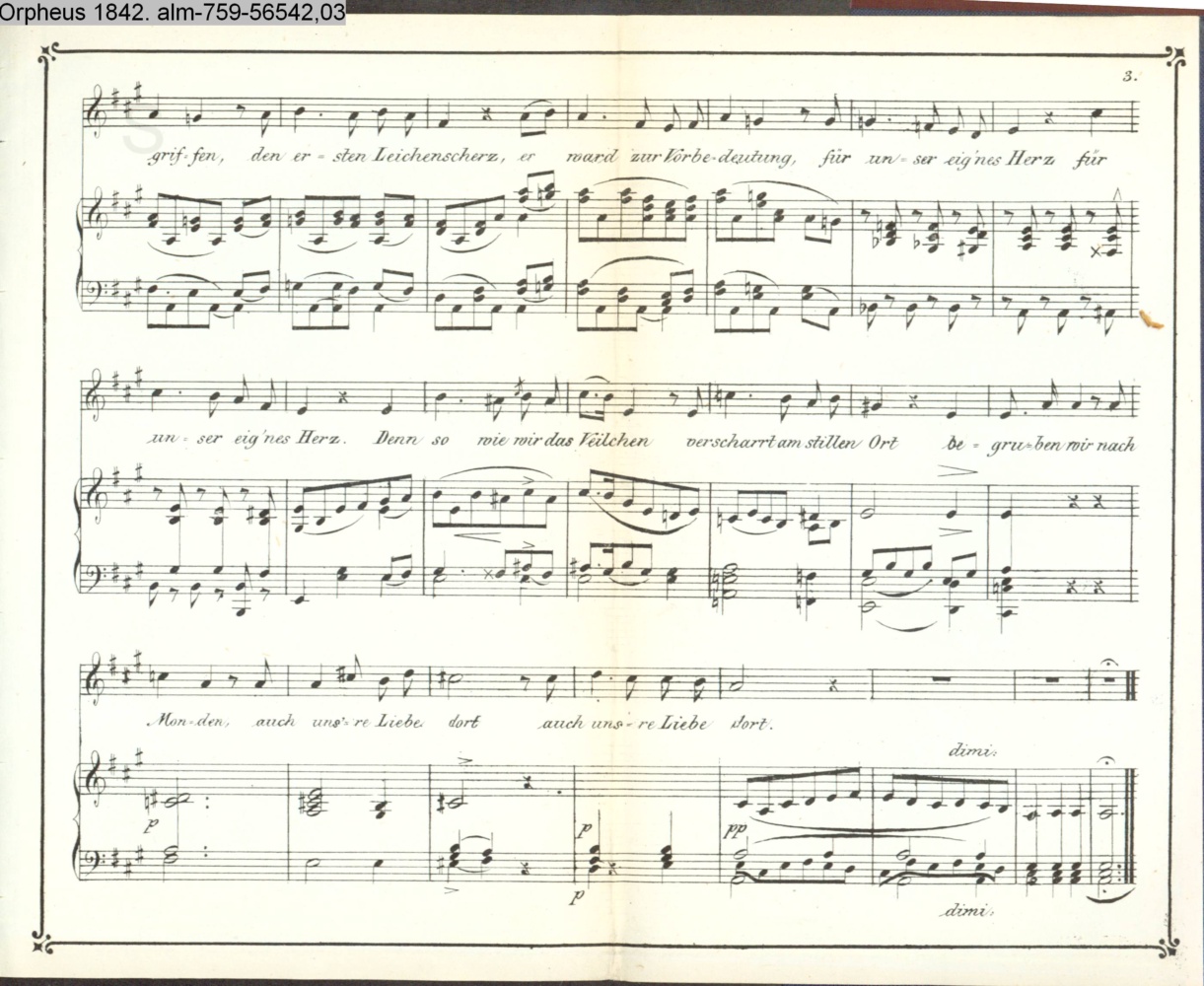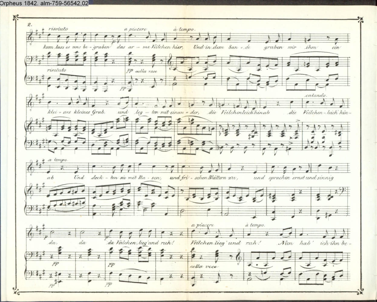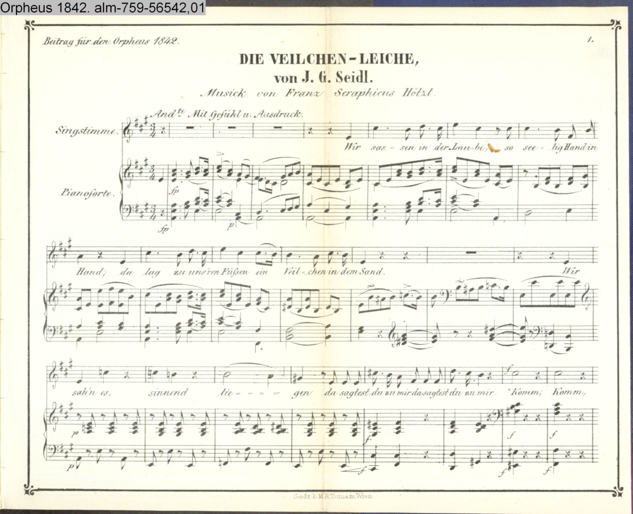 am Objekt: Beytrag für den Orpheus 1842; Gedr. b. M. R. Toma in Wien