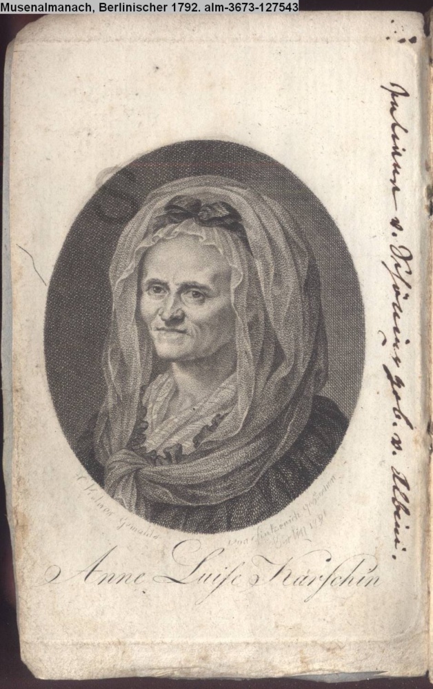 Titelportrait; s. Beitrag »Vorläufige Lebensbeschreibung der Dichterinn Anne Luise Karschin, geb. Dürbach« von A. L. Karsch