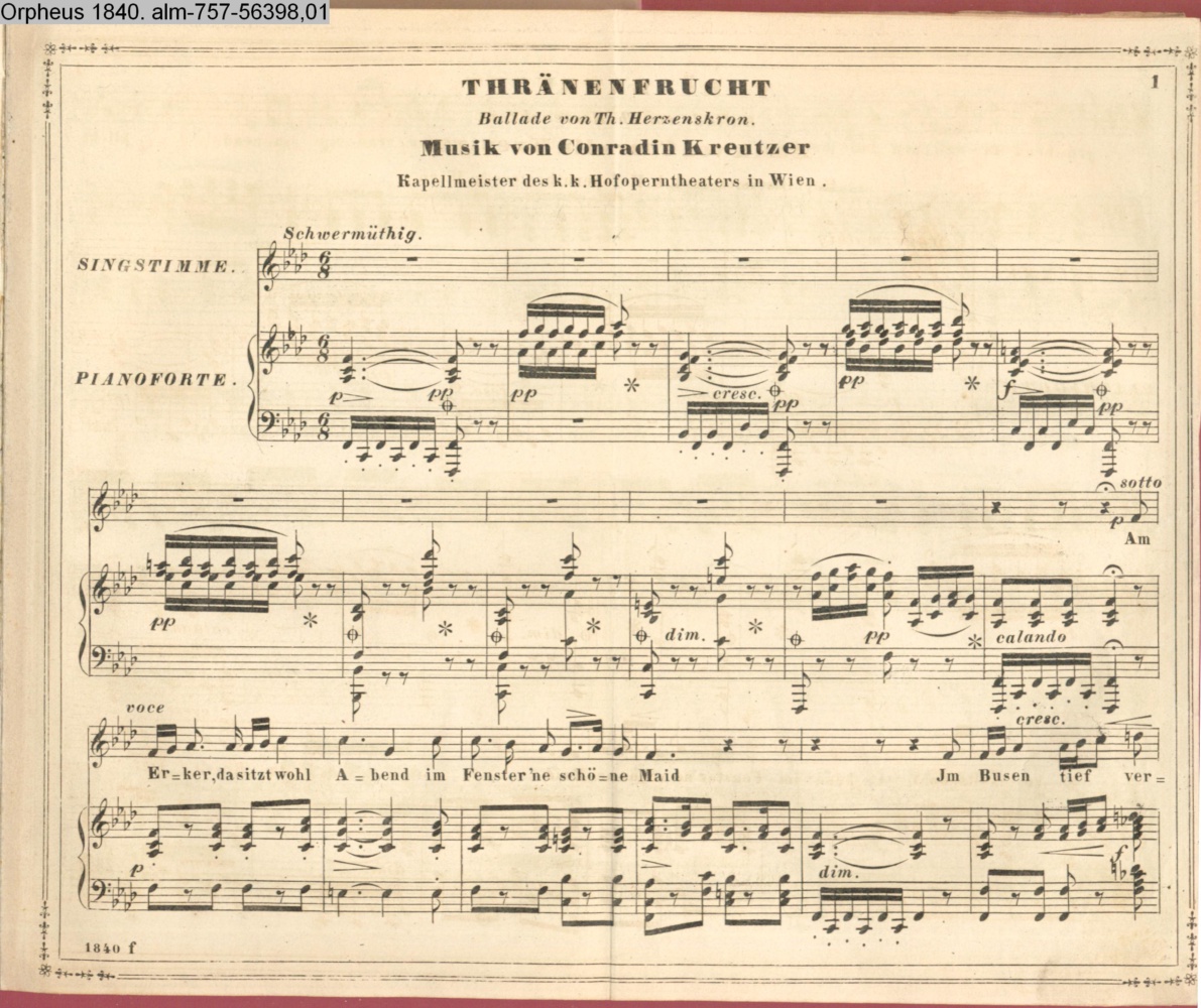 THRÄNENFRUCHT / Ballade von Th. Herzenskron. / Musik von Conradin Kreutzer / Kapellmeister des k.k. Hofoperntheaters in Wien